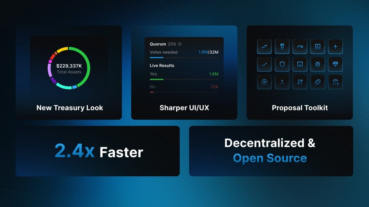 - Unified DAO HQ with core modules (proposals, treasury, activity, upgrades)