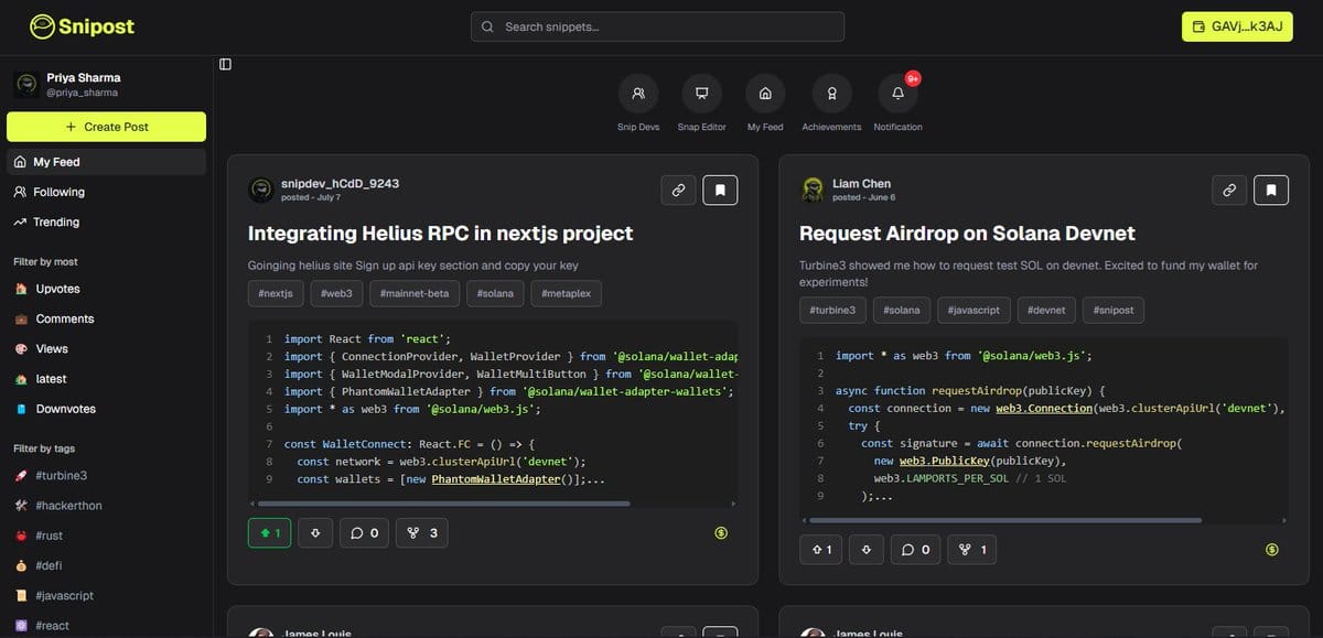 - Snipost Code Snippet Hub for Solana developers